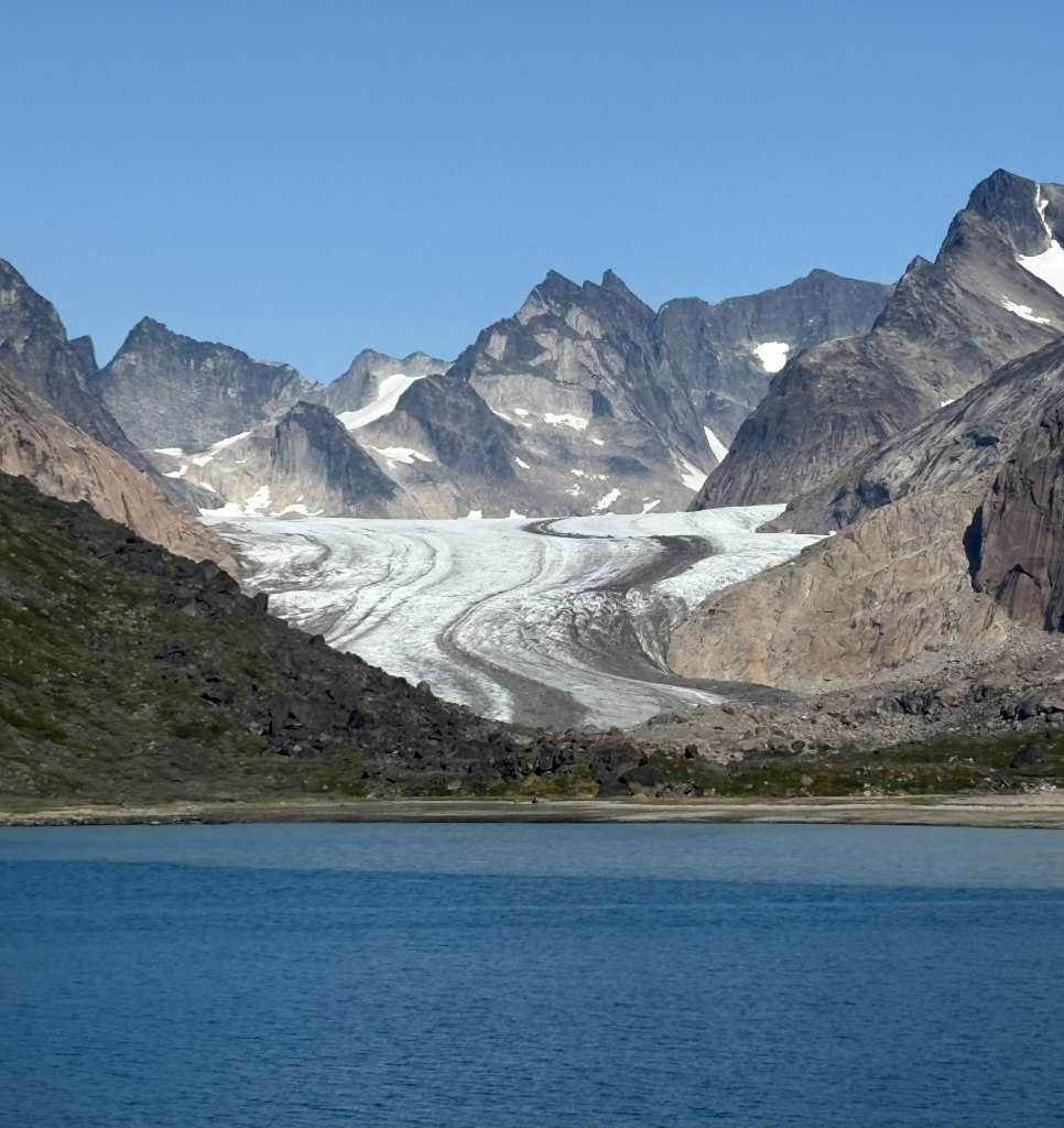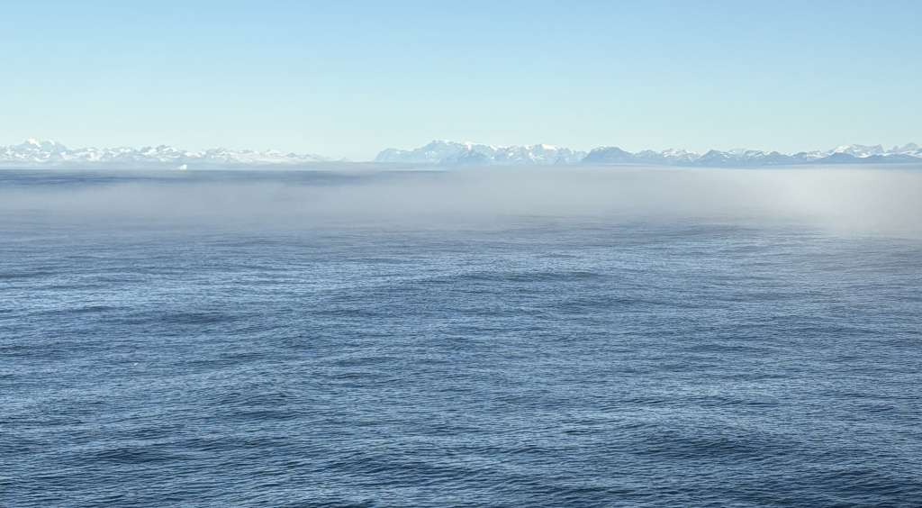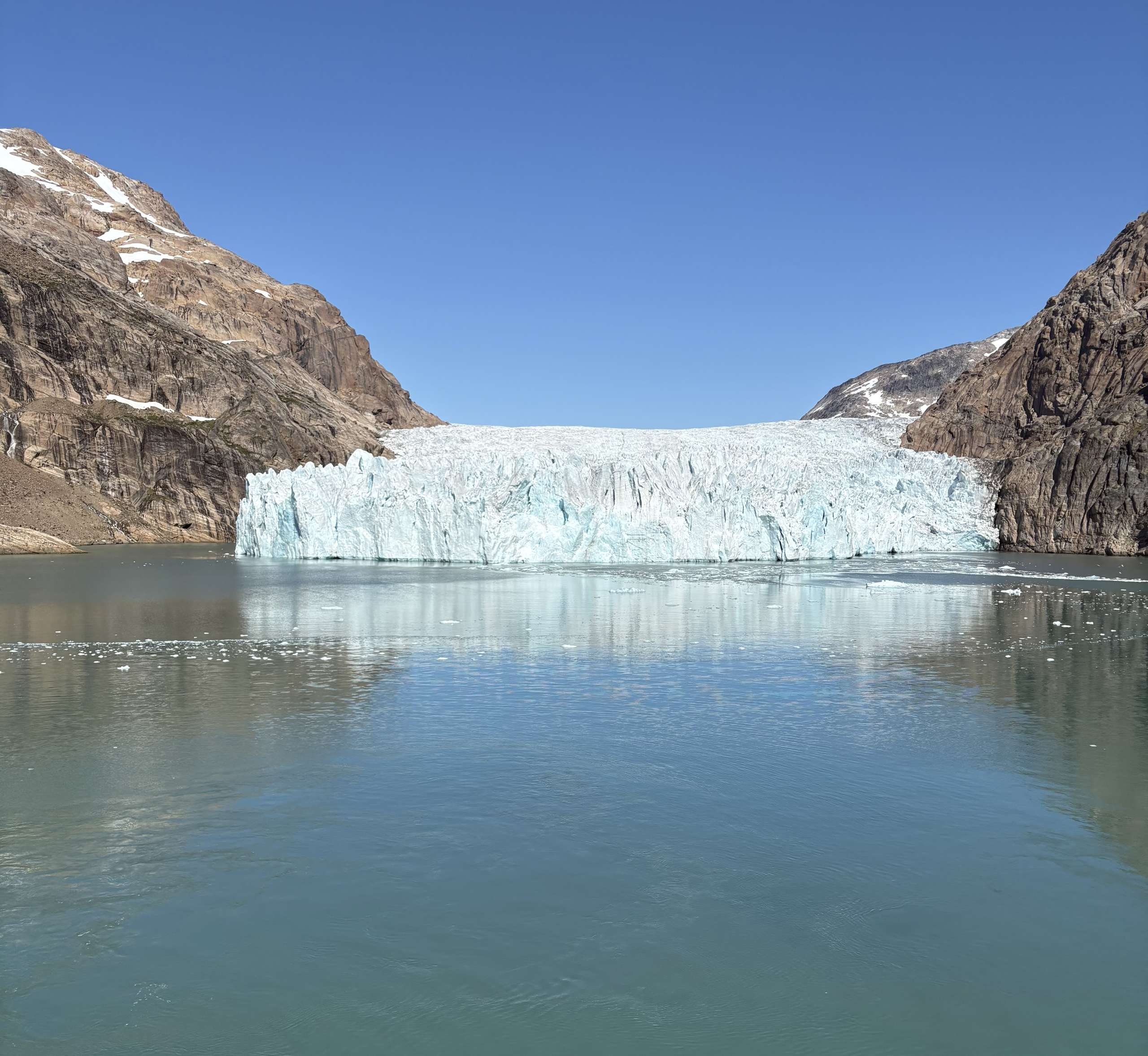 The ship passage from Iceland to the southern tip of Greenland was two days north across the gray Arctic Sea. We arrived at 6 am on a cloudless morning under brilliant blue skies and spent the entire day traversing the island via a fjord running from the east to west coast.