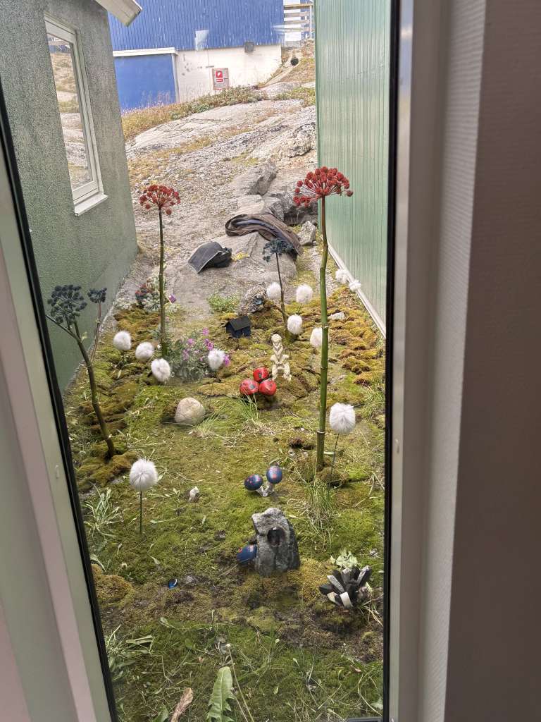 What is truly astonishing about Greenland is the people and their creativity. I took this picture while an artist was installing (you can see his jacket and a satchel on the ground) a whimsical “garden” outside the Fine Arts Museum.